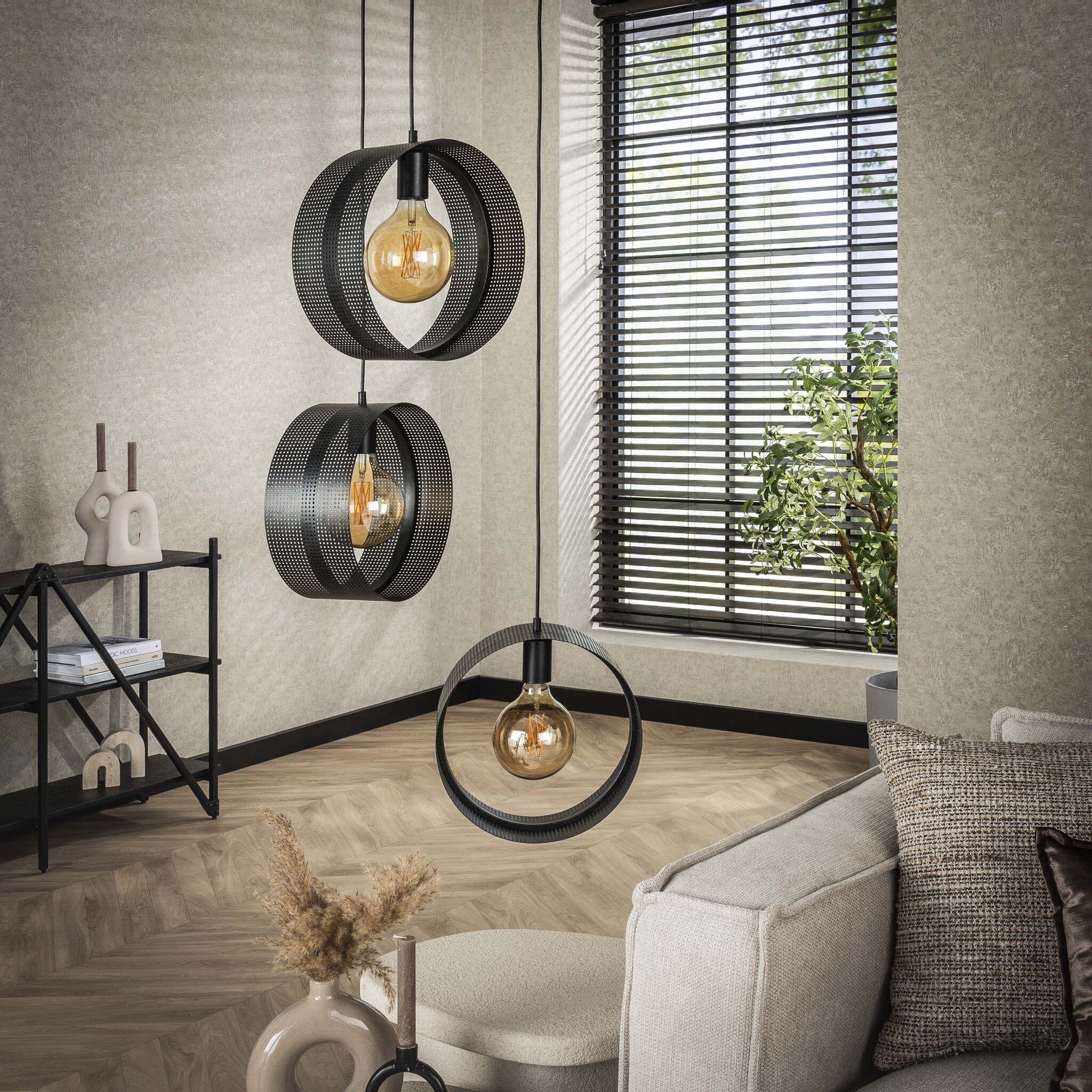 Hanglamp Ring mesh getrapt 3-lichts / Charcoal. Een hoogwaardige hanglampen met modern design en uitstekende afwerking.