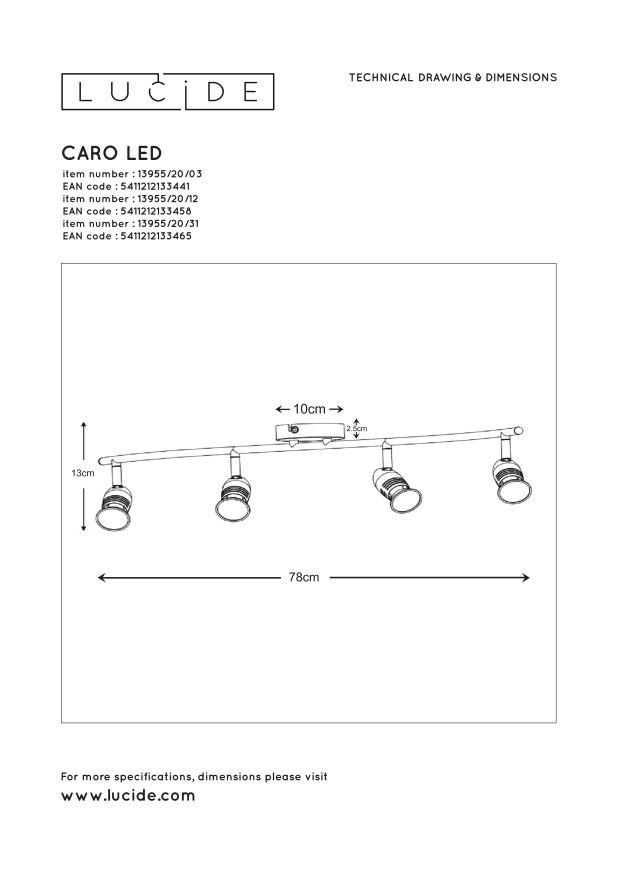 Lucide Lucide Lucide Caro-led - Plafondspot LED GU10 4x5W 2700K Wit