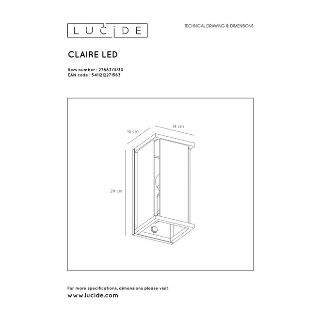 Deze charmante wandlamp voelt zich best thuis buiten. De buitenverlichting combineert dan ook hoogwaardig aluminium met echt glas. Het resultaat zorgt voor heel wat charme en prestaties. Claire, zo heet deze wandverlichting, is ideaal als sfeerverlichting aan je terras of om buitenmuren van je woning te benadrukken. Ook aan de voordeur zorgt deze wandlamp voor een warme welkom. De lichtbron is niet meegeleverd, maar kies gerust voor een led-filamentlamp. Het maakt de uitstraling nog groter. Je kunt de handleiding van dit product hier vinden.