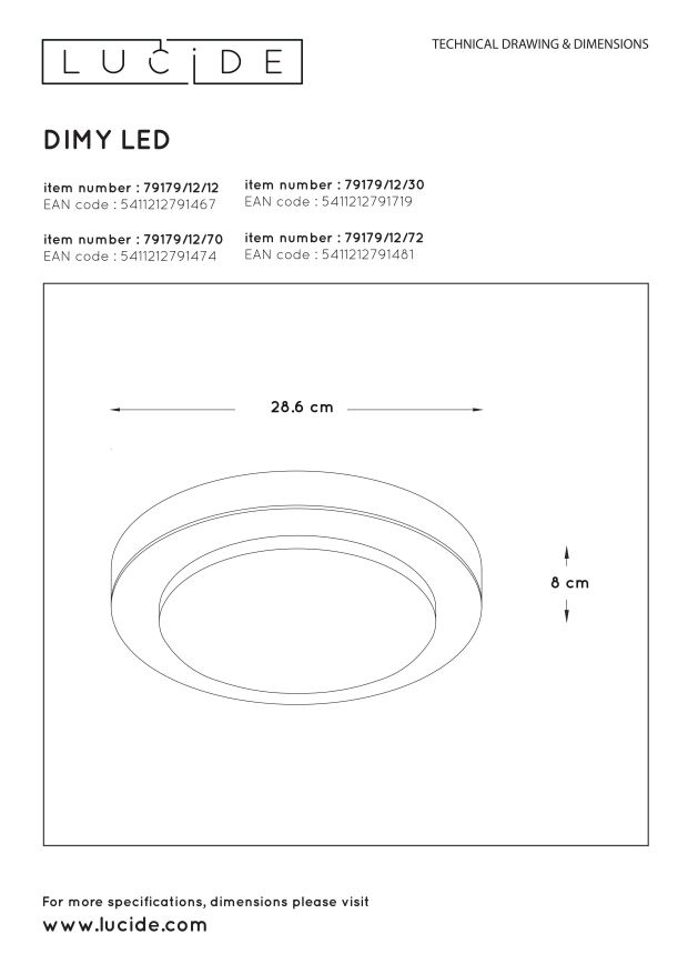 Lucide Lucide Lucide Dimy - Plafonnière Badkamer Ø 28,6 cm LED Dimb. 1x12W 3000K IP21 Zwart