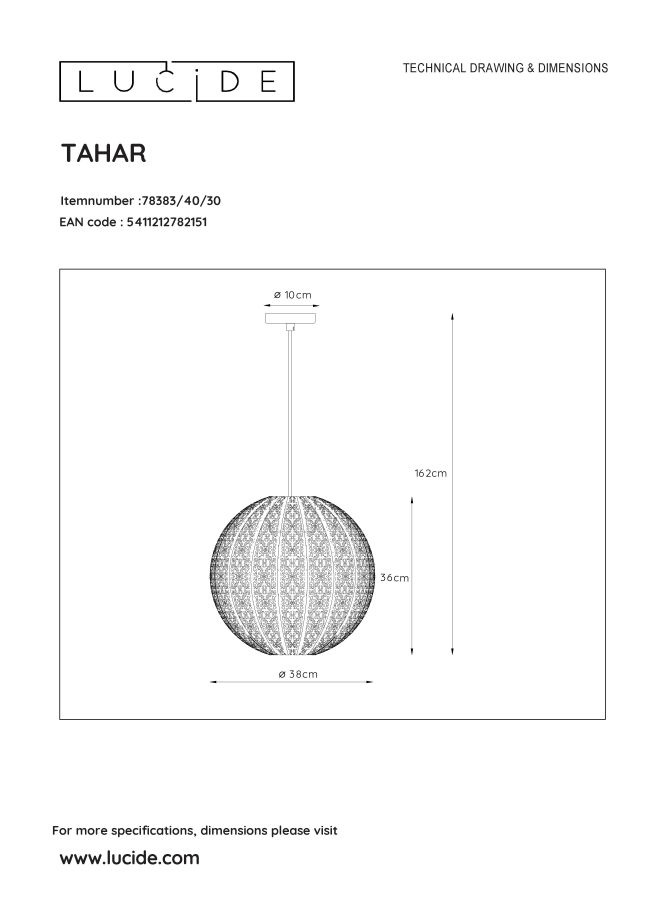 Tahar. De naam alleen al spreekt tot de verbeelding. Deze eigenzinnige hanglamp valt op met zijn Oosterse getinte looks en stevige metalen uitstraling. In je woonkamer, keuken of slaapkamer komt deze knappe verschijning helemaal tot zijn recht. De pendellamp is makkelijk verstelbaar in de hoogte: je kan het snoer inkorten naar je eigen noden. Zeker boven je eettafel is dat een grote troef. En er is meer: Tahar is geschikt voor toepassing met een led-lamp. Kwestie van gezellig en energiezuinig te verlichten. Je kunt de handleiding van dit product hier vinden.